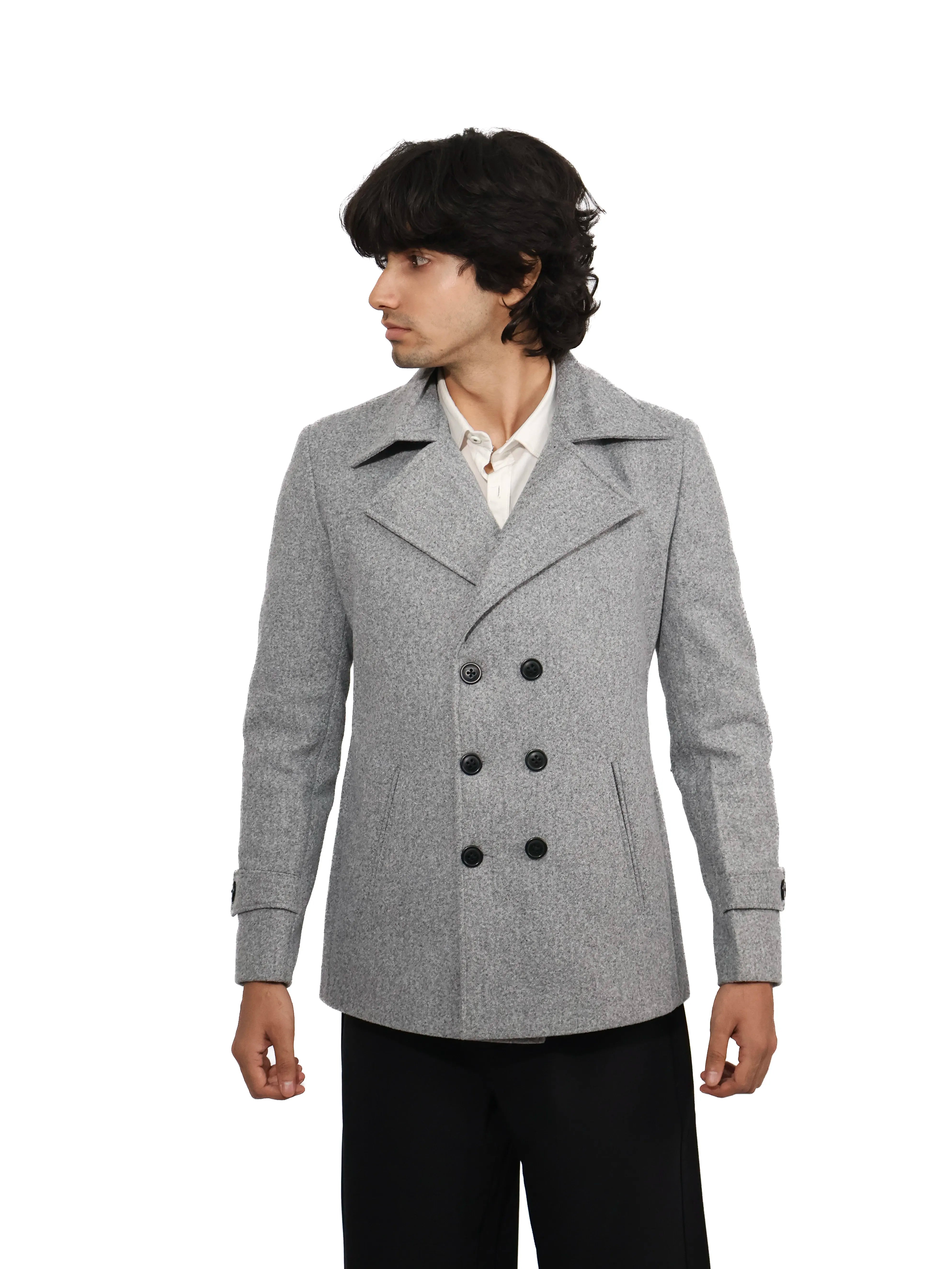 Light Grey Double-Breasted Short Coat